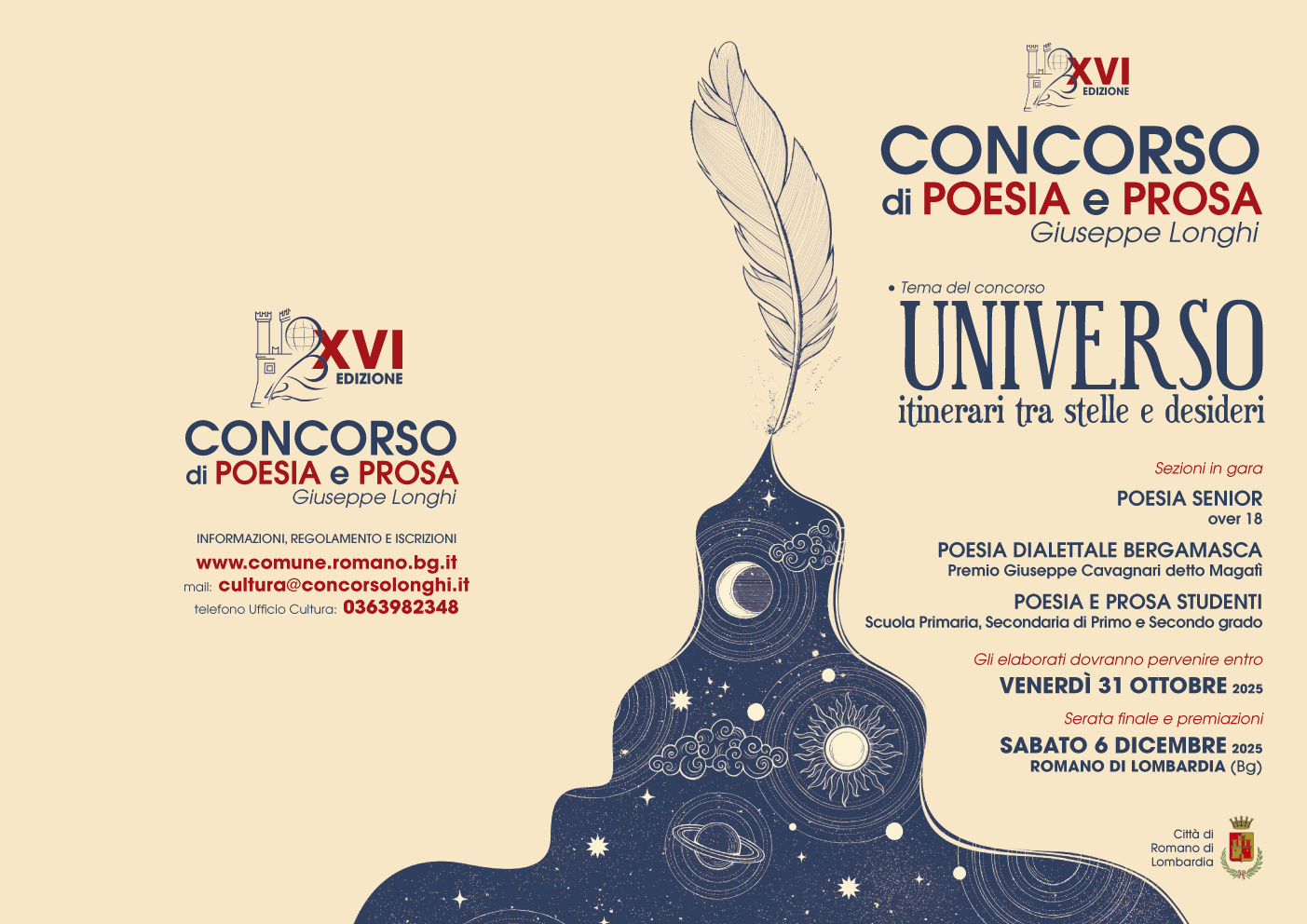 Il Comune di Romano di Lombardia indice la XVI edizione del Concorso di Poesia e Prosa Giuseppe Longhi.