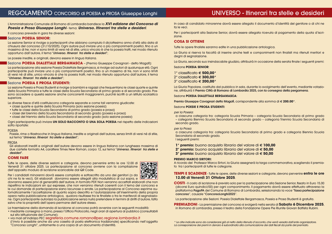 Tutte le informazioni per partecipare alla XVI edizione del Concorso di Poesia e Prosa Giuseppe Longhi – Anno 2025 al link: ConcorsoLonghi2025