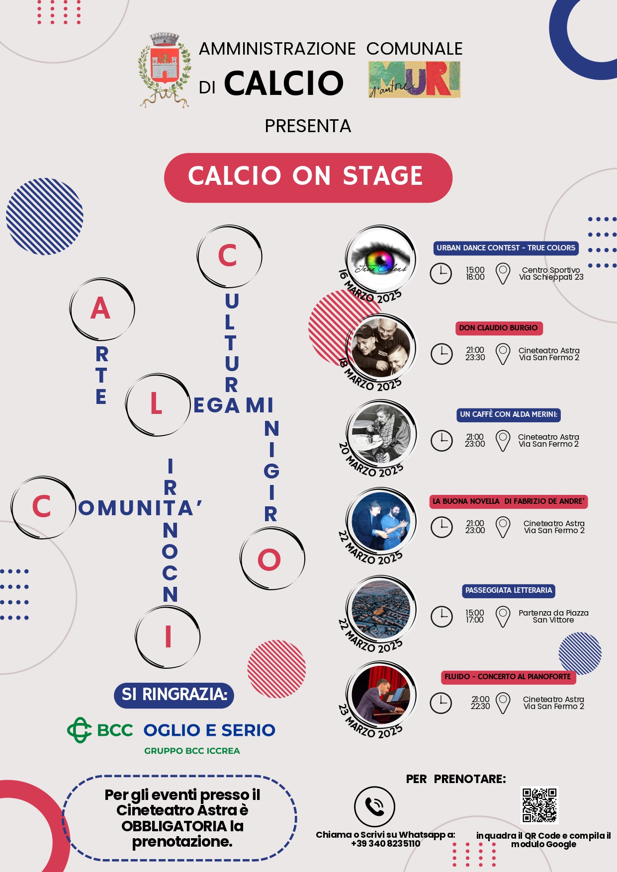 Da domenica 16 a domenica 23 marzo, l’amministrazione comunale di Calcio presenta Calcio on stage.