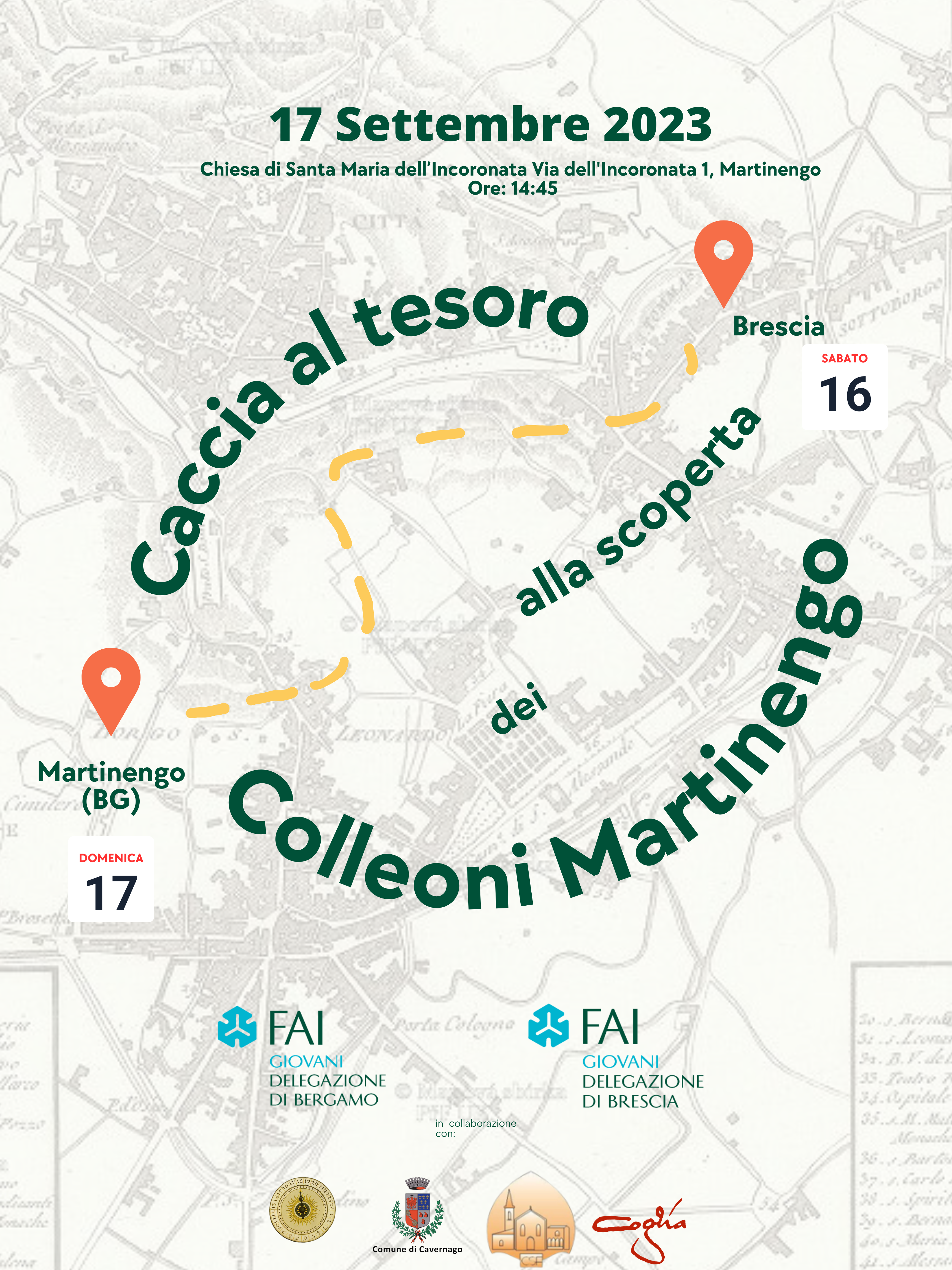 Domenica 17 settembre, le delegazioni dei gruppi FAI giovani di Bergamo e Brescia organizzano la Caccia al tesoro alla scoperta del Colleoni Martinengo.