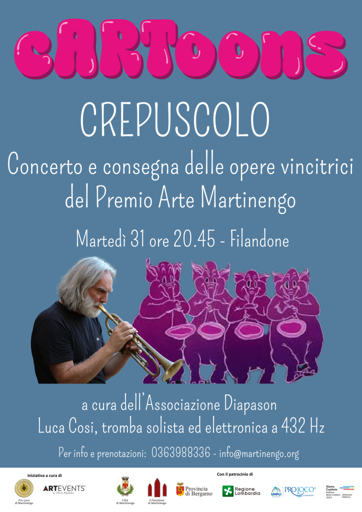 Gli eventi collaterali legati alla mostra: “cARToons: come nasce un capolavoro” si concludono con il concerto “Crepuscolo“, a cura dell’Associazione Diapason. Luca Cosi, tromba solista ed elettronica a 432Hz.