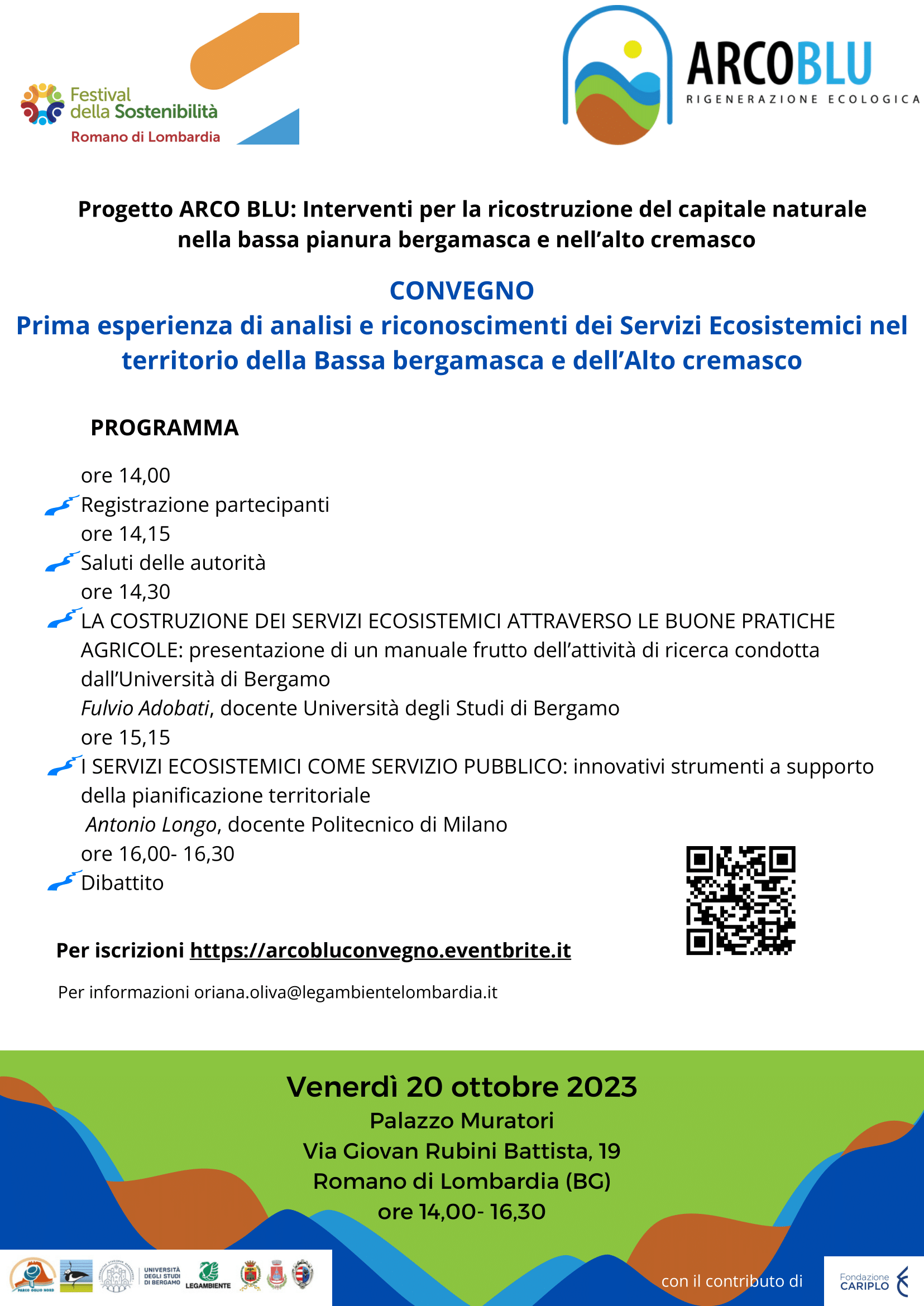 Il convegno rientra nel progetto ARCO BLU: interventi per la ricostruzione del capitale naturale nella bassa pianura bergamasca e nell’alto cremasco.