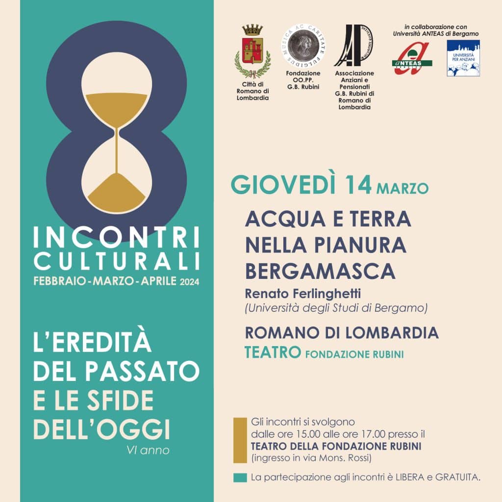 Otto INCONTRI CULTURALI promossi dall’Associazione Anziani e Pensionati “G.B. Rubini”, con la referenza organizzativa di Anteas Bergamo, la collaborazione dell’Amministrazione Comunale di Romano di Lombardia e della Fondazione OO. PP. “G.B. Rubini”.