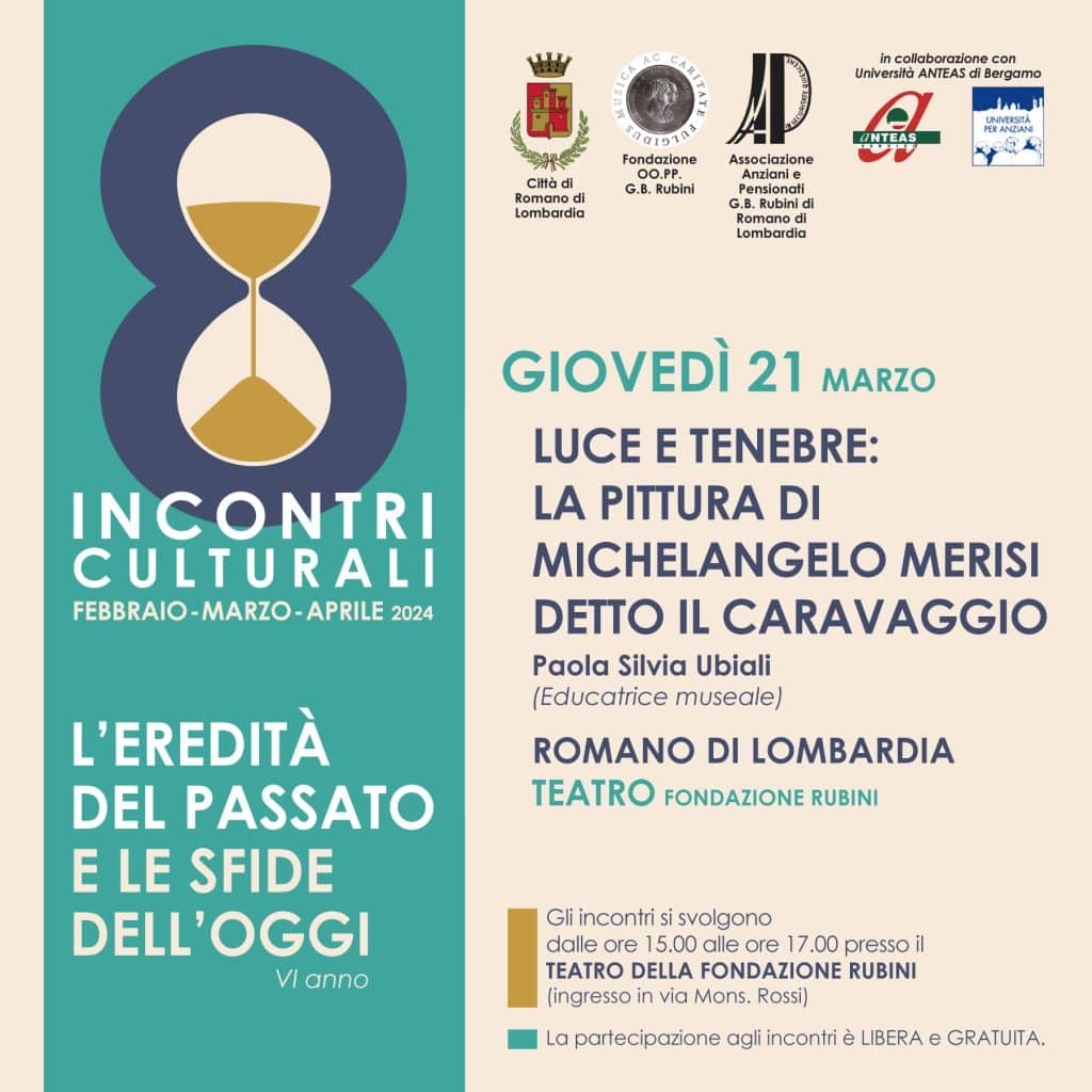 Otto INCONTRI CULTURALI promossi dall’Associazione Anziani e Pensionati “G.B. Rubini”, con la referenza organizzativa di Anteas Bergamo, la collaborazione dell’Amministrazione Comunale di Romano di Lombardia e della Fondazione OO. PP. “G.B. Rubini”.