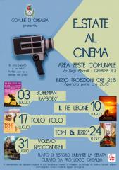 Si allega locandina della programmazione E.STATE AL CINEMA nelle serate 3 -10 -17 – 24 – 31 del mese di Luglio presso Area Feste.