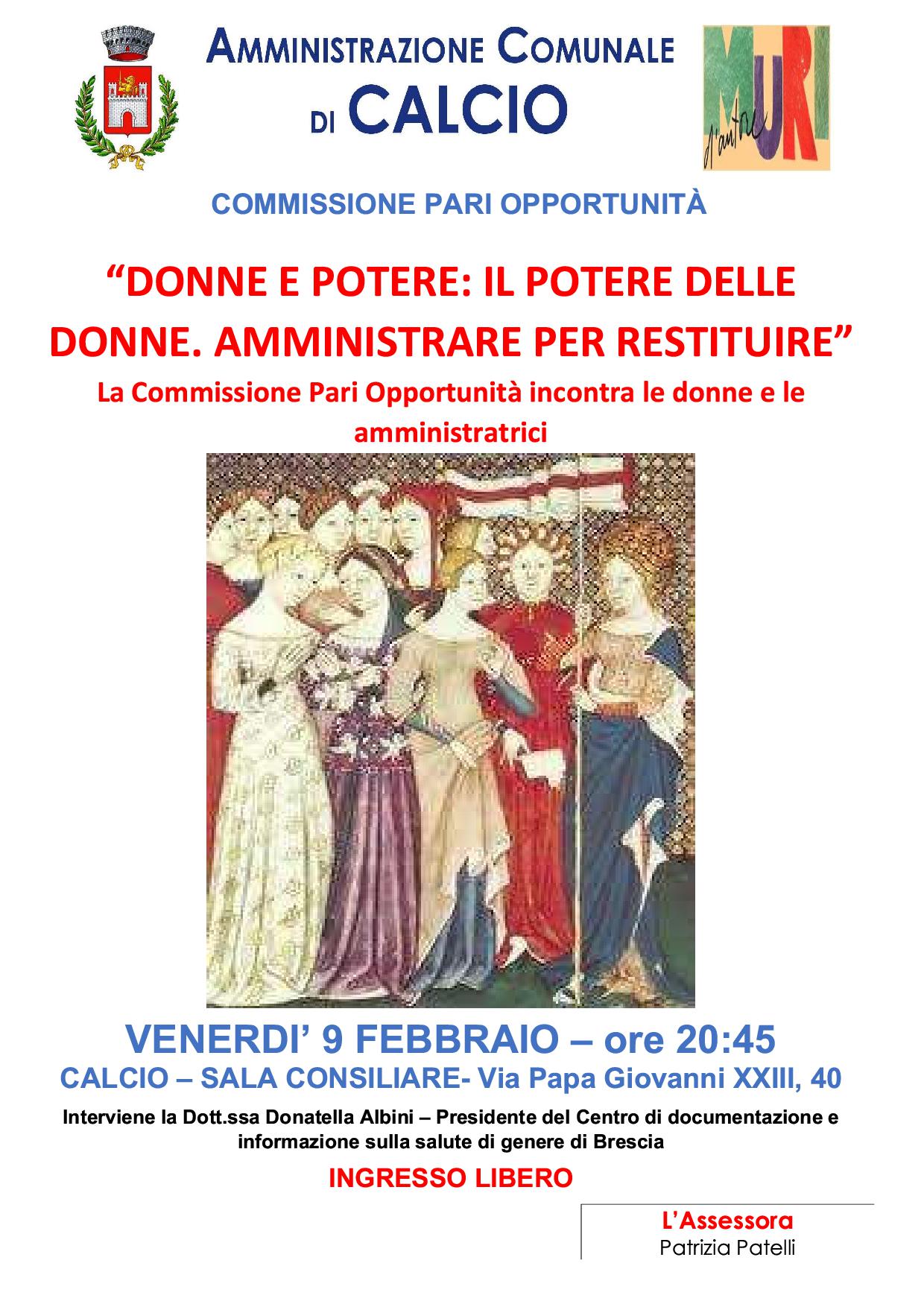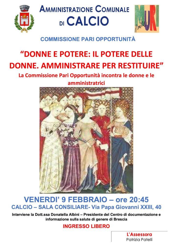 L’Amministrazione Comunale di Calcio vi invita all’incontro tra la Commissione Pari Opportunità, le donne e le amministratrici in “Donne e potere: il potere delle donne. Amministrare per restituire”.
