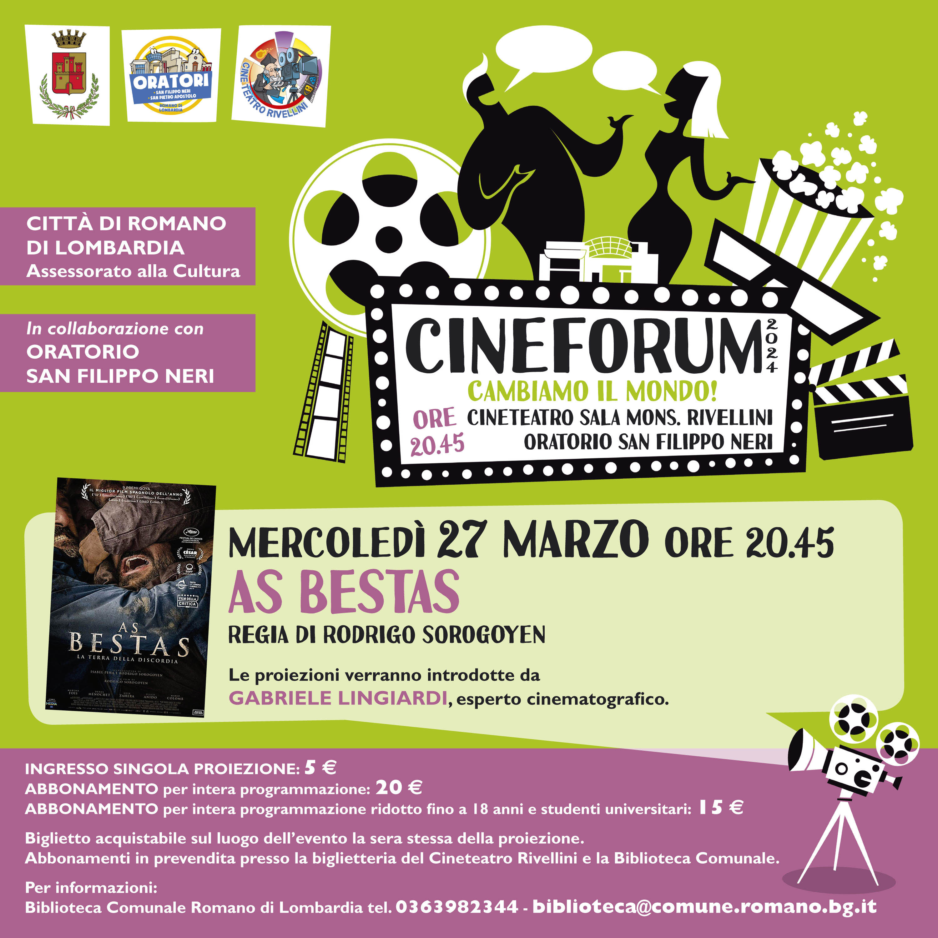Il Comune di Romano di Lombardia in collaborazione con l’Oratorio San Filippo Neri presenta: CINEFORUM 2024 – CAMBIAMO IL MONDO!