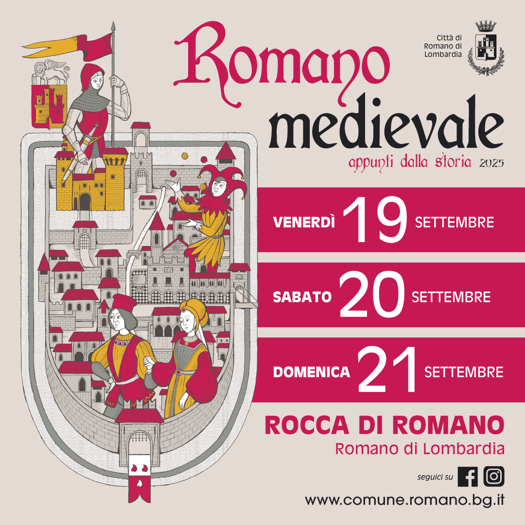 Venerdì 19, sabato 20 e domenica 21 settembre il Medioevo rivive in Rocca a Romano di Lombardia. Armigeri, arcieri, musici, sbandieratori e falconieri. Cavalieri e dame. Visite guidate alla Rocca, sapori d’altri tempi e tanto altro.
